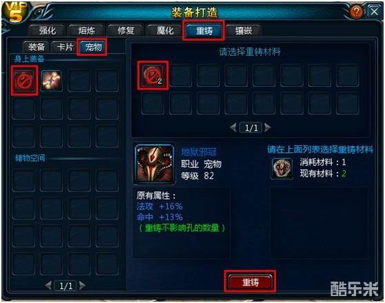 宠物装备虽然不能通关强化来提升装备的属性,但是可以通关使用宠物装备碎片来进行宠物装备的属性重铸。通关重铸可以重新随机生成宠物装备属性,这样就可以将装备重铸为我们所需要的最合适属性了。
