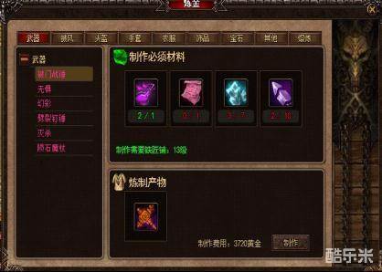 炼金是合成装备的地方,想要打造极品武器,先收集好材料吧。