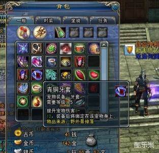 宠物是可以戴装备的哦 而且武装到牙齿,哈哈。附图。宠物装备也是通过野外获得。装备属性强弱。完全看人品。