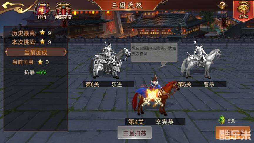 三国无双玩法对于玩家来说存在一定难度,各位主公若想赢得挑战,在等级达到22级之后还需努力提升自身实力。