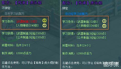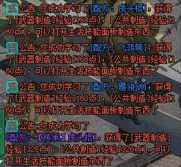 2)学习方法:右键点击配方可学会该物品制作,并增加该类生活技能经验和公共生活技能经验。