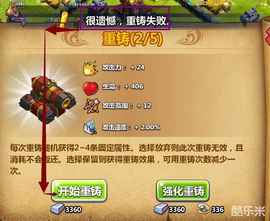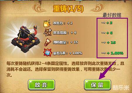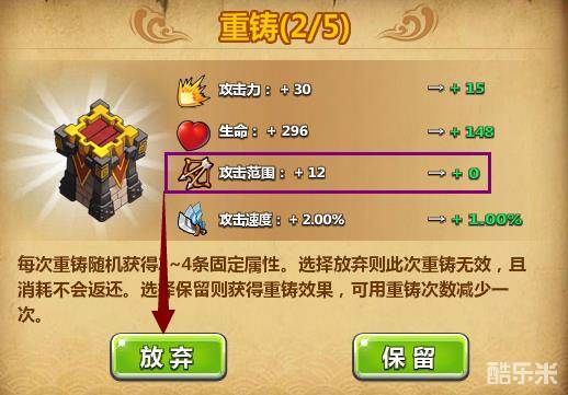 2.【单种防御建筑lv1后,我有0/5,五次重铸保留的机会,下面是重铸开始的选择】