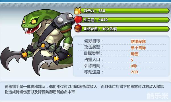 目前版本中,疯狂联盟空降兵只有剧毒猎手,就说说它吧。