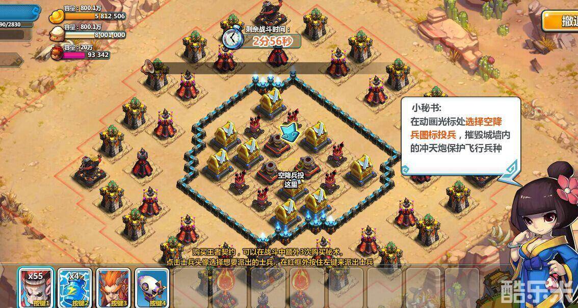 首先,这个空降兵的兵种是需要降落在空地的,有建筑的地方都放不了,如果对付那些密集阵型的玩家,恭喜你,没有给你下兵的位置,所以这个缺点很严重,有兵就是放不到里面去。