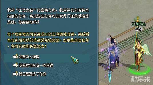 每天完成10个江湖历练任务,可以额外获得经验奖励。