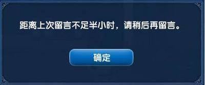 四、为了防止个别玩家恶意刷留言板,每次玩家留言后需要等待半小时后才可以再次留言,不足半小时再次留言会有提示界面出现:
