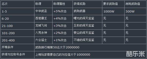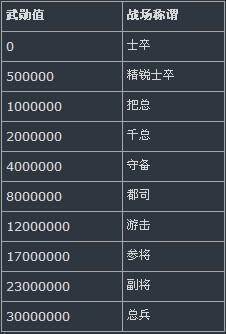 战场内将按照个人武勋值不同的数额,给予对应的称谓。