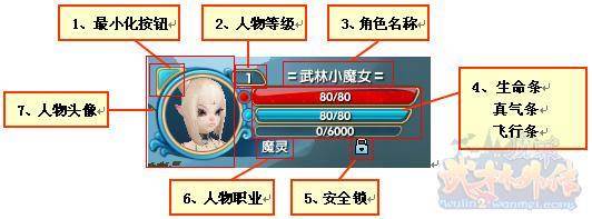 魔条:图形显示角色真气/真气最大值,点击MP按钮在角色人物头顶会显示魔法条。