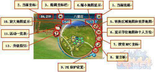 2、 当前坐标:显示人物角色当前所在地图区域及坐标。