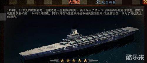 大凤级是939年.日本丸四舰艇补充计划建造的大型重防护航母,由于采用了装甲飞行甲板而导致稳定性较差,搭载飞机数量仅限60架。1944年3月服役,同年6月在马里亚纳海战中被美国潜艇用1发鱼雷击沉,成为了海战史上的经典!