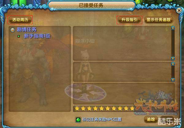 最后编辑于7年前打开任务栏(Q),点击任务面板(Q键)上的【升级指引】,打开升级指引界面。另外,也可通过点击小地图面板左侧的功能按钮(显示为带问号的小灯泡)进入;