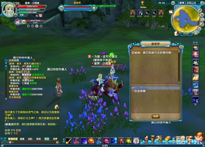 任务完成后,曼荼罗会现身,交任务。交过任务后,会出现好多妖怪,打不过没关系会有好心的世外高人来帮你哦。继续到曼荼罗接任务——鲜花赠佳人。