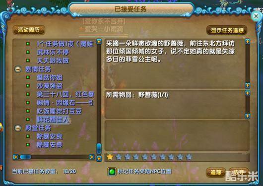 这是最后一步任务了,在附近会有野蔷薇,踩在一朵野蔷薇去东北方找到飞雪公主。