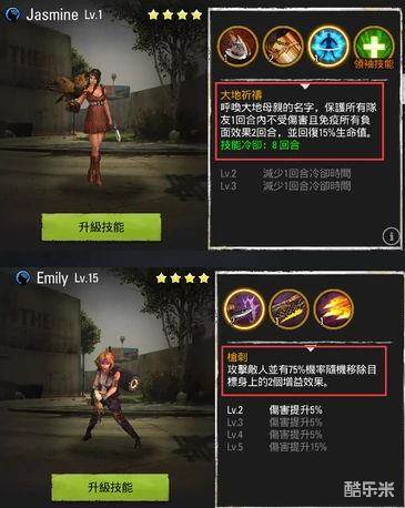 这关必须的技能为消除敌方增益效果和己方不良效果,否则Boss的攻击力依旧能达到秒杀的程度,减少攻击力的不良效果如果不及时移除,会出现打不动Boss的情况,所以同时需要Emily以及Jasmine等幸存者,再搭配其余输出即可通关。