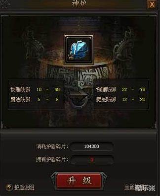 进阶护盾系统需要我们获取大量的护盾碎片,护盾成型之后极大的增加防御能力,护盾碎片的获取一般都是通过活动、击杀BOSS等方式,相对来说这个东西的进阶还是比较困难的,其实笔者在游戏中发现护盾是神炉系统中最难提升的存在,其实笔者经常打BOSS也是觉得护盾的碎片爆的是最少的,笔者获得护盾最多的位置其实就是天空之城的副本掉落最多,毕竟这个副本是转职掉落护盾的存在。我们第一天只要进去两次,就可以获得一阶护盾,但是后面的升级难度比较高,在游戏中期大家注意培养。