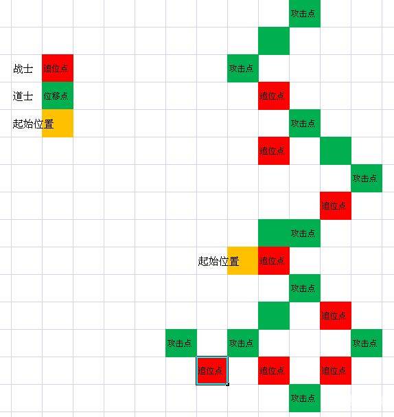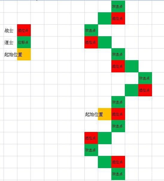 传奇霸业道士单挑战士,击打战士常用走位图: