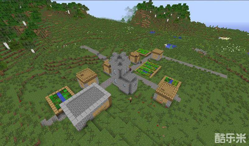 村庄周围有猪和鸡,不远处(X:-201 y:64 z:263)还有沼泽群系。