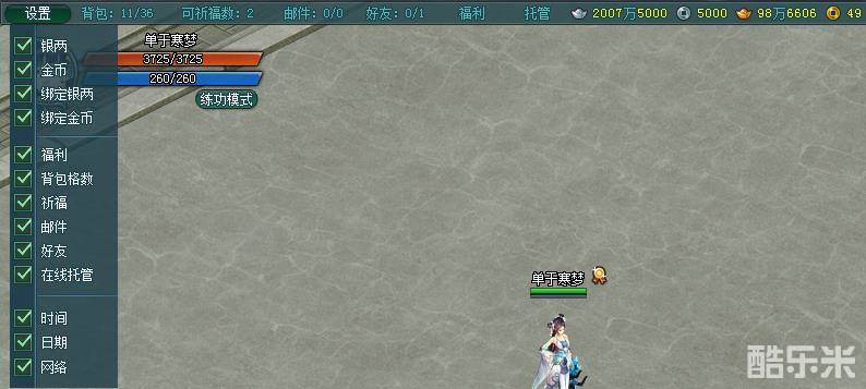 角色信息:显示角色当前的信息和状态。包括头像、名字、等级、血量、内力值等。