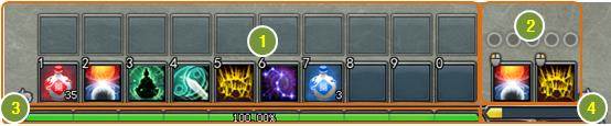 ①快捷栏:游戏中有2层快捷栏。将招式、物品图标放入快捷栏空格中,按相应的数字键或鼠标点击图标即可使用。
