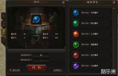 第一就是暴击力,也就是我们出现暴击之后额外打出的攻击力,第二就是暴击率就是我们在游戏中大怪出现暴击的几率,而我们在游戏中不断的提升魂珠,这两个属性是同步增加的,魂珠进阶的道具是魂珠碎片,在游戏中魂珠碎片的获取途径是参加游戏中的各种活动以及游戏中击杀BOSS都有可能获取,难度是比较高的,当然在商城中我们也是可以买的到的,大家根据实际需要选择我们的获取方式。