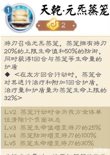 侠岚手游中比较特殊的一个奶妈,他在游戏中召唤蒸笼在场上,蒸笼作为一个独立的召唤物在友方角色行动前进行治疗并且驱散全体友方1个减益状态,蒸笼继承游刃的速度和生命,但是并不继承暴击,而是拥有独立的暴击,并且暴击并不影响治疗量。同时游刃的被动是被击有几率回复元炁,这使得游刃的功能性大大增强。游刃的装备是以生命和速度属性为主。游刃的蒸笼回复不享受女英的治疗加成效果。
