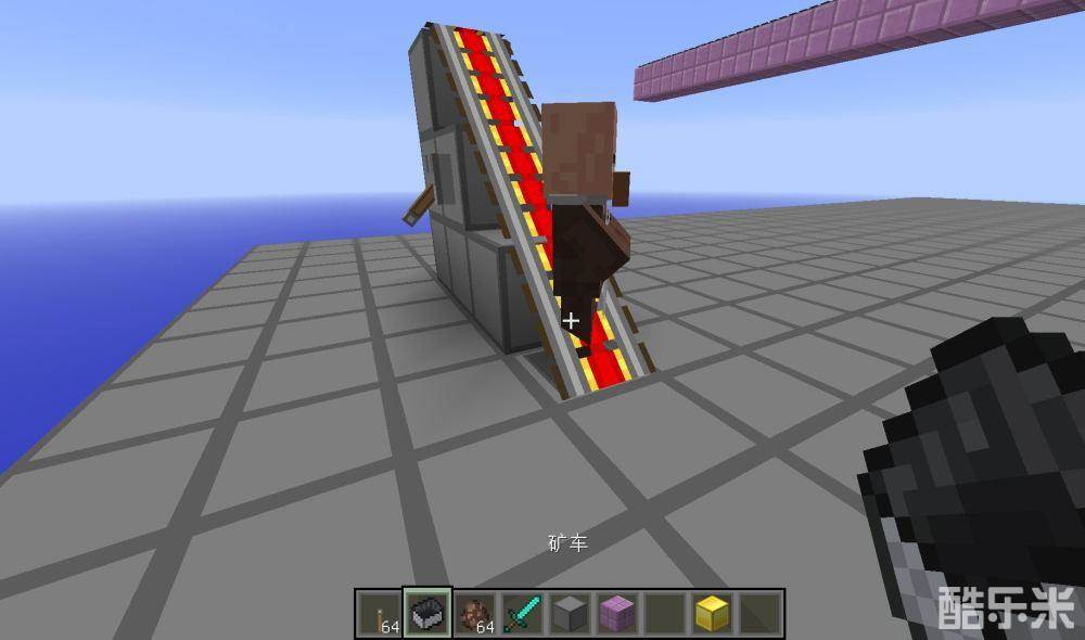 第一种,村民脚下发射器对村民站着的铁轨发射矿车