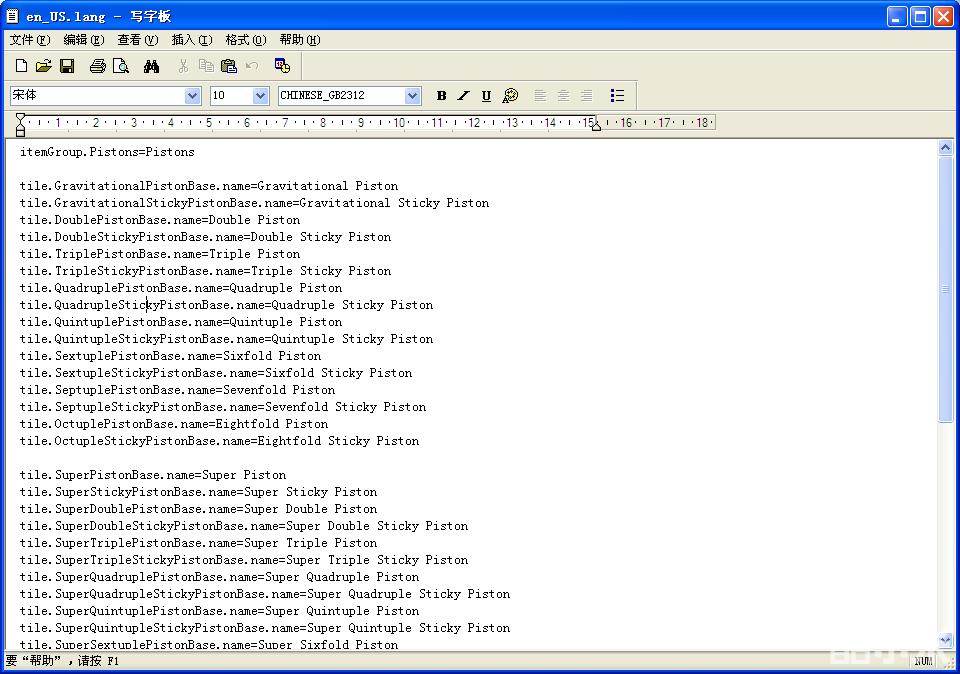第四步:将lang文件里的en_US.lang打开,并将里面的内容全部复制下来,放进刚创建的