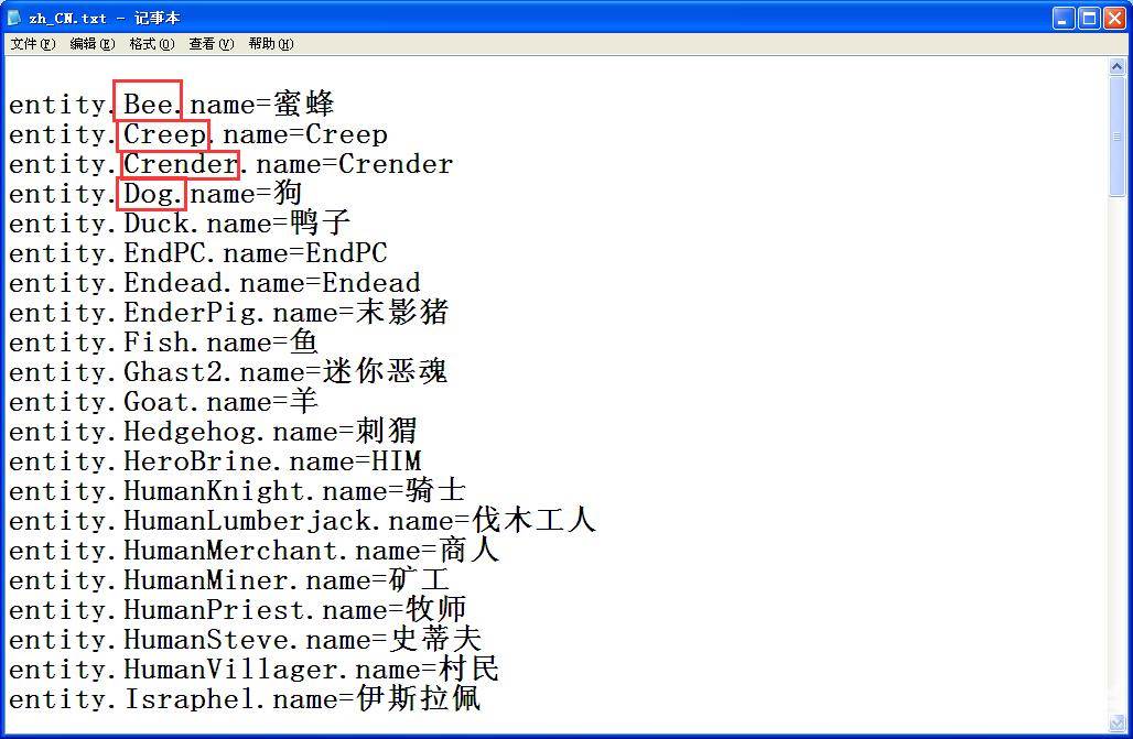 第五步:将zh_CN.txt文件里的所有英语单词去百度出其意思,并在“=”后面修改你所满意的意思