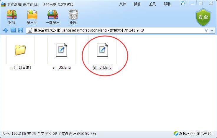 第七步(最后一步):把保存替换后的zh_CN.txt文件改名为zh_CN.lang,放在mod.jar里的lang文件里