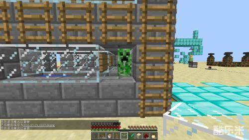 做法很简单,上面一个苦力怕刷怪塔,他摔下来就剩1到2点血左右,然后你站在苦力怕前2格,身后的小白会把他射死。