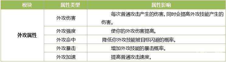 3)外攻属性,人物的外攻相关属性。