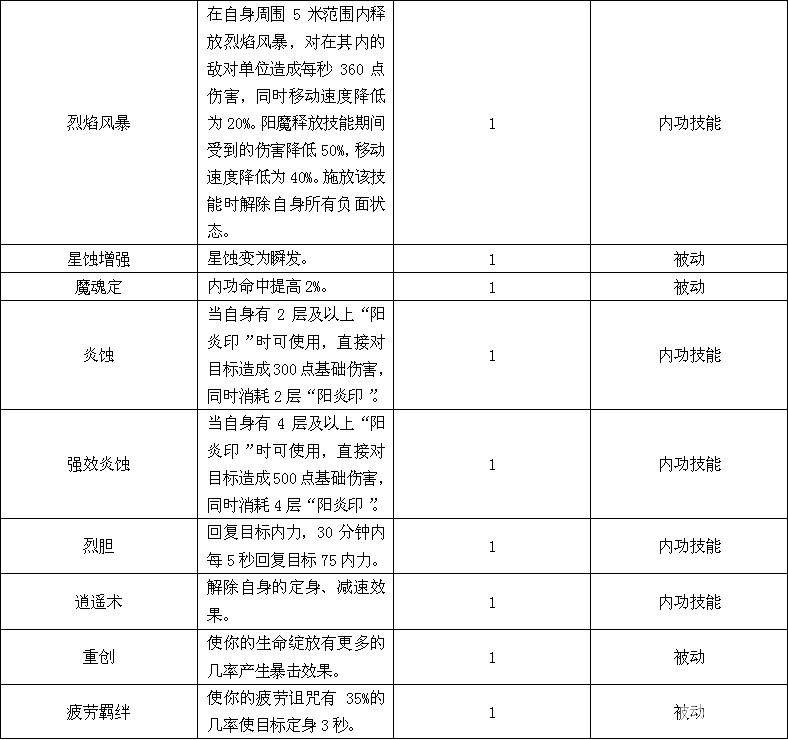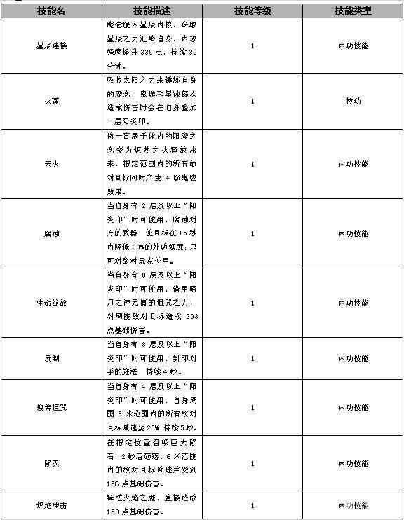 以昊日之炎华,摧敌于赤火烈焰。昊日为万物灵华之源,炎芒炽烈,其源无尽,从昊日中获得灵能的阳魔也因此具有无与伦比的战斗力和旺盛的生命力,同时也有着不可小觑的自我恢复能力。阳魔掌握着至强的天火神通,擅长以天火之威炙人心魄、灼人神魂,让敌人先于熊熊烈焰中痛苦煎熬,得到最大程度的削弱,然后方从容取其性命。即使逢遇强敌,身陷危境时,阳魔也可以吸收昊日之光华,迅速补充自身的生命和法力,以超顽强的战斗力上演绝地反击、惊天逆转的拿手好戏。