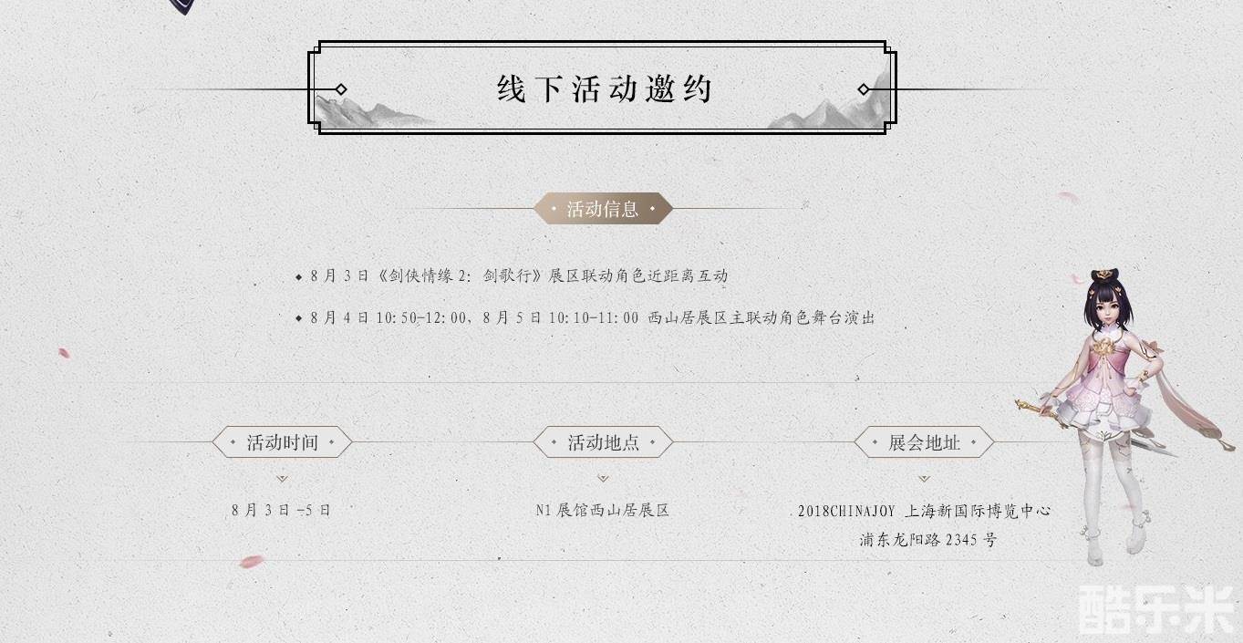 《剑侠情缘2:剑歌行》X《霹雳布袋戏》联动确定,2018cj开启线下活动。2018ChinaJoy即将来袭,《剑侠情缘2:剑歌行》手游将携手《霹雳布袋戏》开启联动,8月3日-5日,双方将在西山居展区进行线下联动活动,届时联动神秘角色将亲临现场,让我们拭目以待吧!