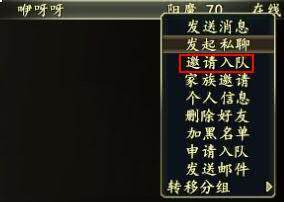1.选取角色,右键点击角色头像,在弹出的列表中选择“邀请入队”。