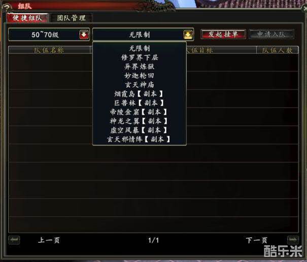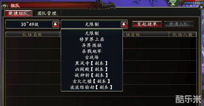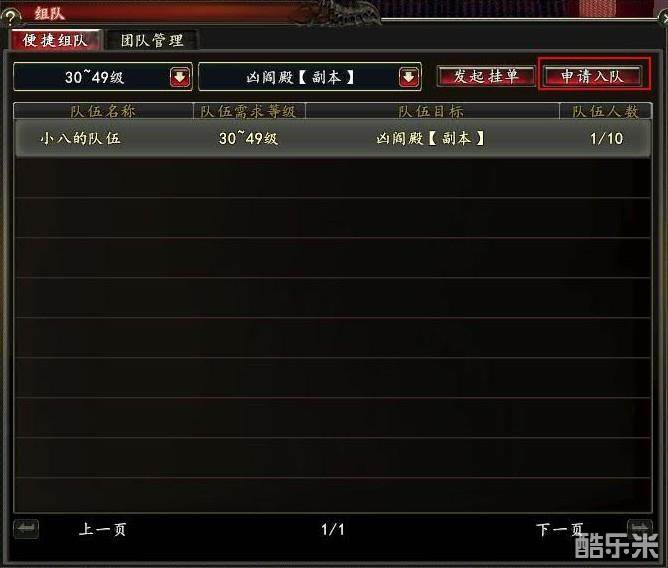 玩家也可以直接在便捷组队里面搜自己想要组队的等级和副本,选好以后点击右上角的申请入队,队长通过以后可加入队伍。