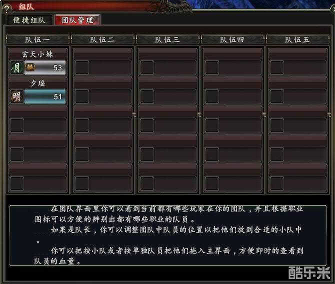 在团队界面中玩家可以看到当前都有哪些玩家在自己的队伍,并根据职业图标可以方便的辨别出队伍中都有哪些职业的队员。如果是队长可以调整团队中队员的位置,根据职业分配他们合适的小队。