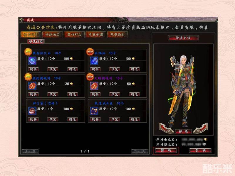 为了给玩家更多的优惠,促进玩家商城购物的积极性,玄天之剑推出了商城团购系统,在团购中,玩家可以很低的价格购买到商城内的物品。