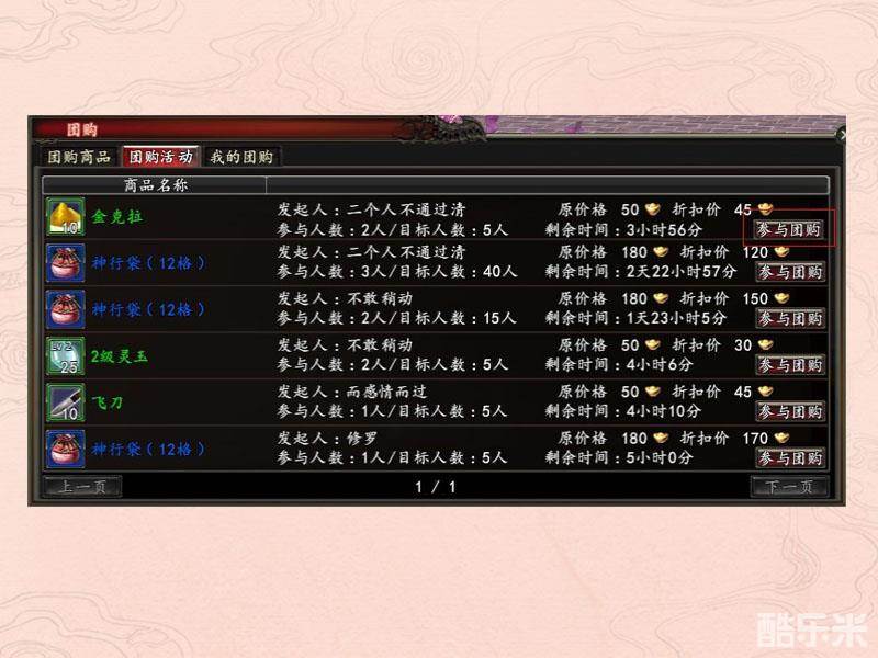 团购活动是目前有玩家发起的团购商品,如有需要购买可直接点击参与团购。