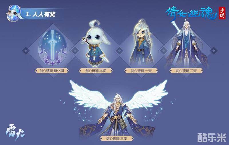 报名参赛的玩家都将获得本次大赛的吉祥物剑心琉璃,剑心琉璃拥有五种神秘形态,活动期间使用育灵丹对其进行培育,可以解锁其不同形态,若使用道具五彩羽还可解锁剑心琉璃的更多材质!玩家可以将其做成炫酷的灵兽外观,届时行走在三界回头率必将暴增!
