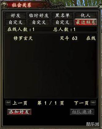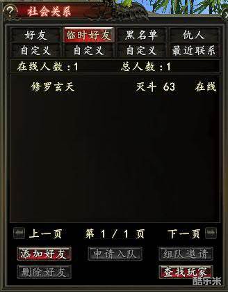 玄天之剑的好友系统,是玩家之间的交互工具,玩家可以使用好友系统聊天、交流,也可以用好友系统里的黑名单、仇人了解自己与其它玩家之间的关系。