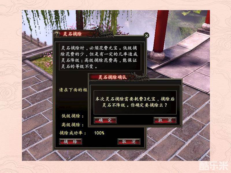 低级摘除:花费少量元宝,但有一定几率造成摘除下的灵石等级降级;