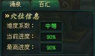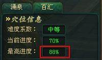 穴位信息:【难度系数】越高的穴位,属性加成也越高;【当前进度】显示的是目前已冲击成功的层数数量;【最高进度】显示的是该穴位冲击成功过的最高层数;一个穴位一共有10层穴;
