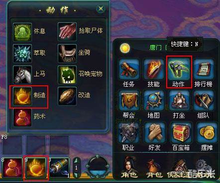 制造界面可通过“动作”(快捷键N)→“制造”按钮点击后打开,或通过“1-0”快捷键初始按键打开。