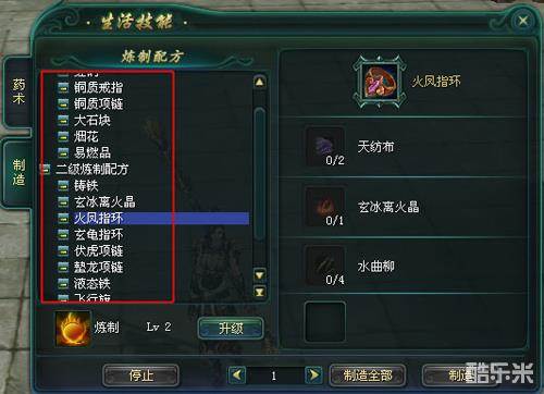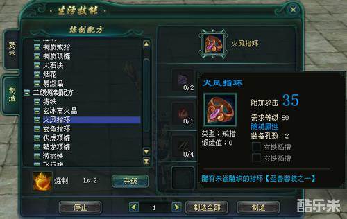 炼制部分可制作道具:高端指环、项链、神秘包裹
