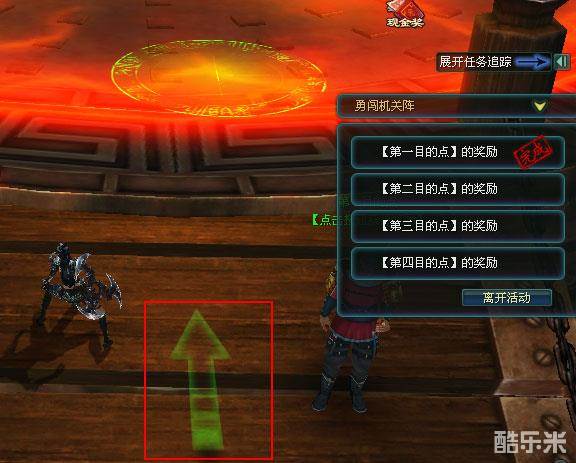 2.进入到集合区后会出现活动指引,根据地上箭头指向前进,通过右侧提示栏可查看到奖励信息;