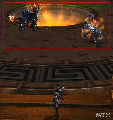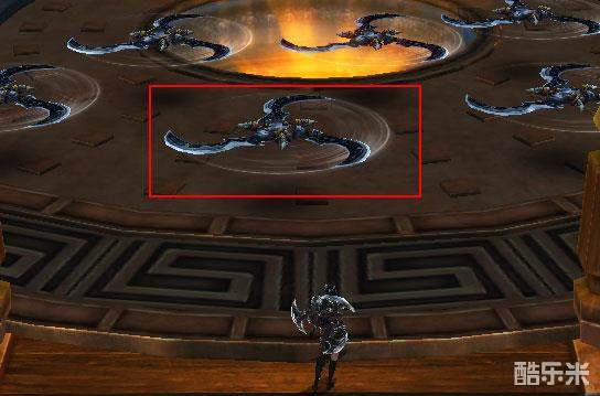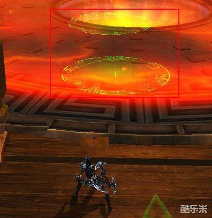 下方机关中,玩家站在绿色光环内可恢复生命力,而在该机关平台其他处均会受到大量的伤害,所以需要玩家合理利用平台内的绿色光环从而穿越该机关平台;
