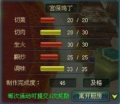 5.在活动中需要每个玩家各执其职,使各项数值稳定增加,面板中的制作完成度品级越高,奖励也会越丰厚。如果想提交完成获取奖励,可通过与活动副本内的NPC李师傅对话进行提交菜肴获取报酬。