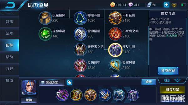 最后一件出防御装,之前出不祥征兆的话就出魔女斗篷,反之同理。