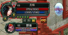 角色信息区域显示玩家的名称,等级,生命值,法力值,势力阵营,PK模式,宠物信息,经验加成及武林秘笈特有的PK保护——无双值。