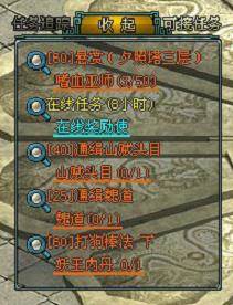 此处为任务快捷面板。任务追踪区域显示当前已经的任务,点击任务目标可自动寻路,点击任务内容前的放大镜按钮可打开任务界面。